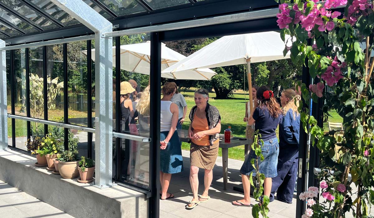 Byggeriet af Krogerup Højskoles nye “forsamlingsdrivhus” begyndte i marts måned og er denne sommer blevet helt færdigt. I disse dage er der fuld gang i undervisningen i det nye drivhus.